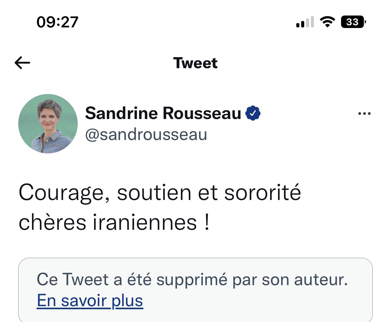 Christophe On Twitter Sandrine Rousseau Apporte Son Soutien Aux Femmes Iraniennes Qui Menent Un Combat Courageux Suite Au Meurtre De Mahsa Amini Puis Supprime Rapidement Son Tweet Surement Par Crainte De Froisser